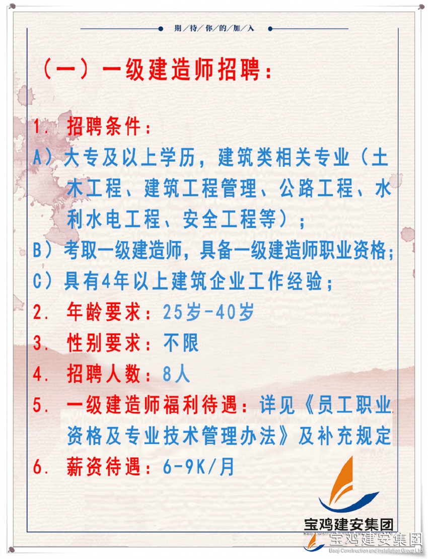 寶雞建安集團股份有限公司2019年招聘火熱進行中......