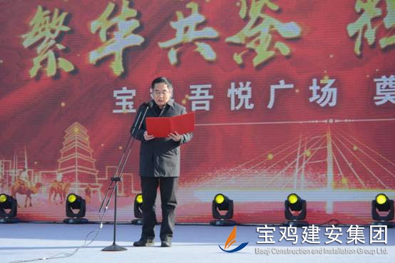 2018年1月16日上午,寶雞新城吾悅廣場(chǎng)項(xiàng)目奠基儀式在高新區(qū)舉行,該項(xiàng)目是繼恒大、碧桂園之后,寶雞高新區(qū)引進(jìn)的又一個(gè)千億級(jí)商業(yè)航母——新城控股集團(tuán)在西北地區(qū)建設(shè)的第二個(gè)一站式綜合廣場(chǎng)。奠基儀式上,公司董事長(zhǎng)景常榮代表施工單位致辭,新城控股集團(tuán)副總裁陸建華代表建設(shè)單位致辭,高新區(qū)黨工委書(shū)記、管委會(huì)主任郝晉升代表政府單位致辭。高新區(qū)管委會(huì)領(lǐng)導(dǎo)、新城控股集團(tuán)領(lǐng)導(dǎo)、寶雞建安集團(tuán)董事長(zhǎng)、寶雞市中小企業(yè)協(xié)會(huì)領(lǐng)導(dǎo)等為項(xiàng)目培土奠基。公司組織管理人員、施工人員共計(jì)300人參加了奠基儀式。