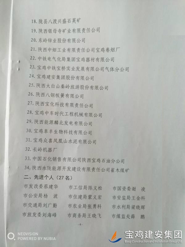 熱烈祝賀我司榮獲寶雞市2017年度安全生產(chǎn)工作先進(jìn)企業(yè)