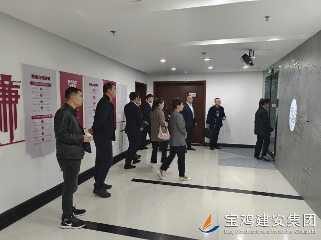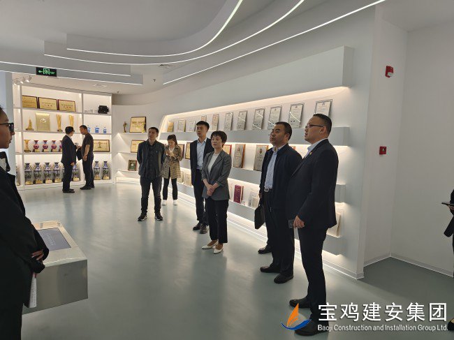在公司總經(jīng)理胥永寧等集團領(lǐng)導的陪同下,考察團一行前往寶雞建安大廈,觀看企業(yè)宣傳片,了解集團經(jīng)營產(chǎn)業(yè)概況。代表團一行還參觀了公司23樓體育健身設(shè)施場館及職工文化娛樂配套項目;在建安大廈22樓企業(yè)展廳里,嘉賓們仔細觀看了陳列在此的企業(yè)榮譽成績、代表性工程及歷史實物,在胥總和展廳講解員的引導和解說下,代表團一行全面了解了寶雞建安集團六十年輝煌歷史,以及集團在推動寶雞城建事業(yè)中所做出的卓越貢獻和重要地位。