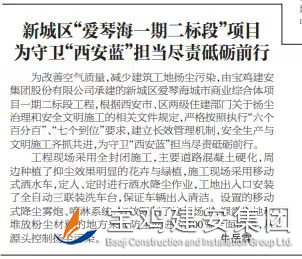 為改善空氣質(zhì)量,減少建筑工地?fù)P塵污染,由寶雞建安集團(tuán)股份有限公司承建的新城區(qū)愛(ài)琴海城市商業(yè)綜合體項(xiàng)目一期二標(biāo)段工程,根據(jù)西安市、區(qū)兩級(jí)住建部門關(guān)于揚(yáng)塵治理和安全文明施工的相關(guān)文件規(guī)定,嚴(yán)格按照?qǐng)?zhí)行“六個(gè)百分百”、“七個(gè)到位”要求,建立長(zhǎng)效管理機(jī)制,安全生產(chǎn)與文明施工齊抓共進(jìn),為守衛(wèi)“西安藍(lán)”擔(dān)當(dāng)盡責(zé)砥礪前行。