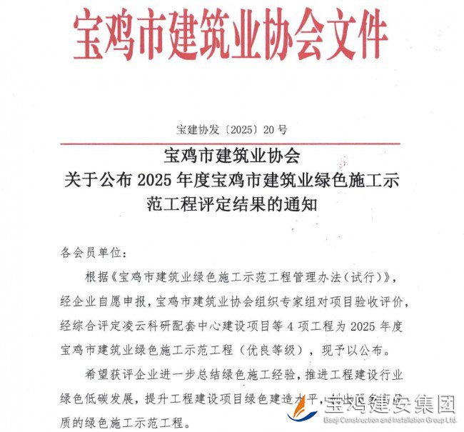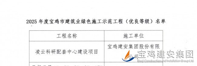 公司承建的凌云科研配套中心建設(shè)項(xiàng)目榮膺“2025 年度寶雞市建筑業(yè)綠色施工示范工程”稱(chēng)號(hào)