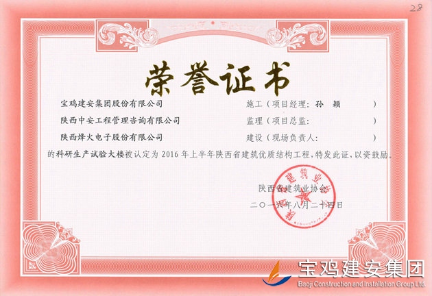 烽火科研生產(chǎn)試驗(yàn)大樓 省優(yōu)質(zhì)結(jié)構(gòu)工程