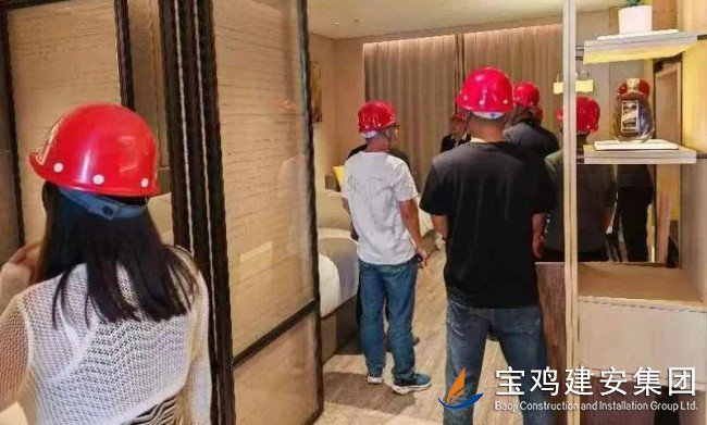 來訪人員首先闡明了此行的目的和意義,我單位相關(guān)管理人員針對(duì)隴縣海棠酒店項(xiàng)目特征、在建情況、建成后主要建筑功能,向各位嘉賓進(jìn)行了詳細(xì)介紹。隨后在安裝一公司現(xiàn)場(chǎng)管理人員陪同下,對(duì)隴縣海棠酒店已成型樣板間,廚房、大堂及地下車庫等工程重點(diǎn)建設(shè)部位進(jìn)行實(shí)地參觀考察。我公司管理人員對(duì)西建集團(tuán)、陜西省建筑設(shè)計(jì)院同仁提出的專業(yè)問題給予了耐心解答,在輕松友好的氣氛中,嘉賓對(duì)我公司施工項(xiàng)目質(zhì)量及企業(yè)綜合實(shí)力表達(dá)了高度認(rèn)可與肯定。